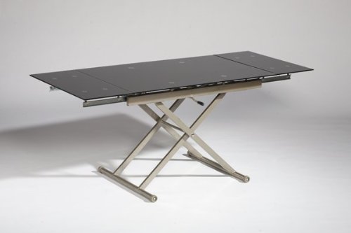 Camila Adjustable Height Cocktail Table by Chintaly Imports CAMILA-CT. Finish Chrome and Black Glass Specification This item includes CI-CAMILA-CT Camila Adjustable Height Cocktail Table 29W x 47D x 29H Please refer to the Specifications to determine what items are included since sometimes the image shows more or less items. If you are not sure, please contact us and our customer service will be glad to help.
