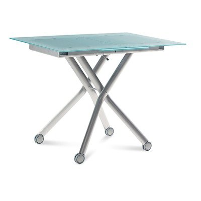 Primary Finish:Satinated Aluminum, Secondary Finish:Patterned Glass Extendable Lacquered metal frame Tempered glass top Adjustable height with gas device